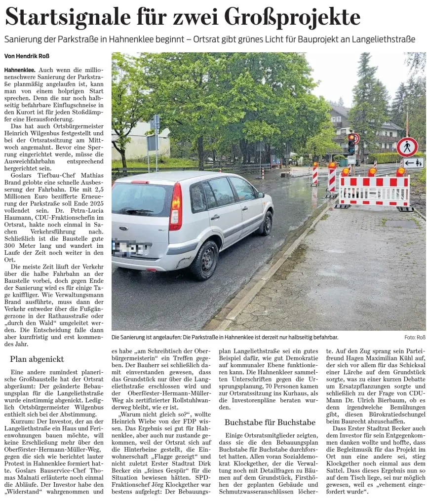 – Sanierung Parkstraße und Bauvorhaben Langeliethstraße