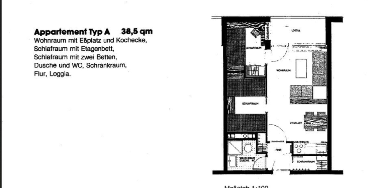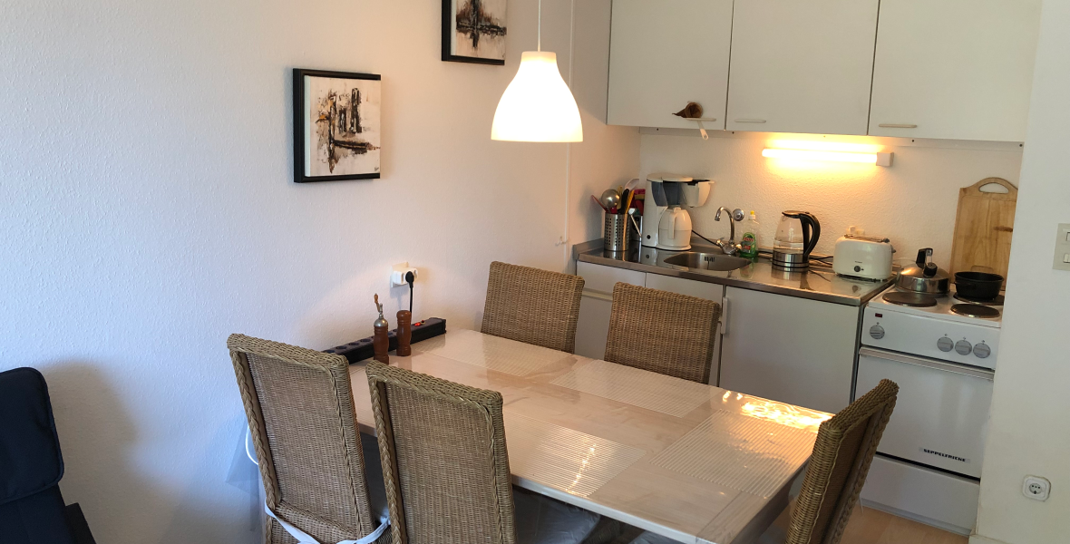 Sie verfügt über Zentralheizung und zwei Schlafzimmer, eins mit Doppelbett und eins mit zwei Etagenbetten. Im Wohnzimmer findest Du neben der gemütlichen Couch einen SAT-TV Flachbildschirm mit vielen deutschen Fernseh- und Radioprogrammen. Die integrierte Kitchenette hat vier Kochfelder, Backofen, Kühlschrank mit Gefrierfach, Senseo- und herkömmliche Kaffeemaschine, Wasserkocher, Toaster, Mikrowelle und alles was Du benötigst, wenn Du nicht auswärts essen gehst. Das Bad verfügt über Duschwanne, Waschbecken und WC.