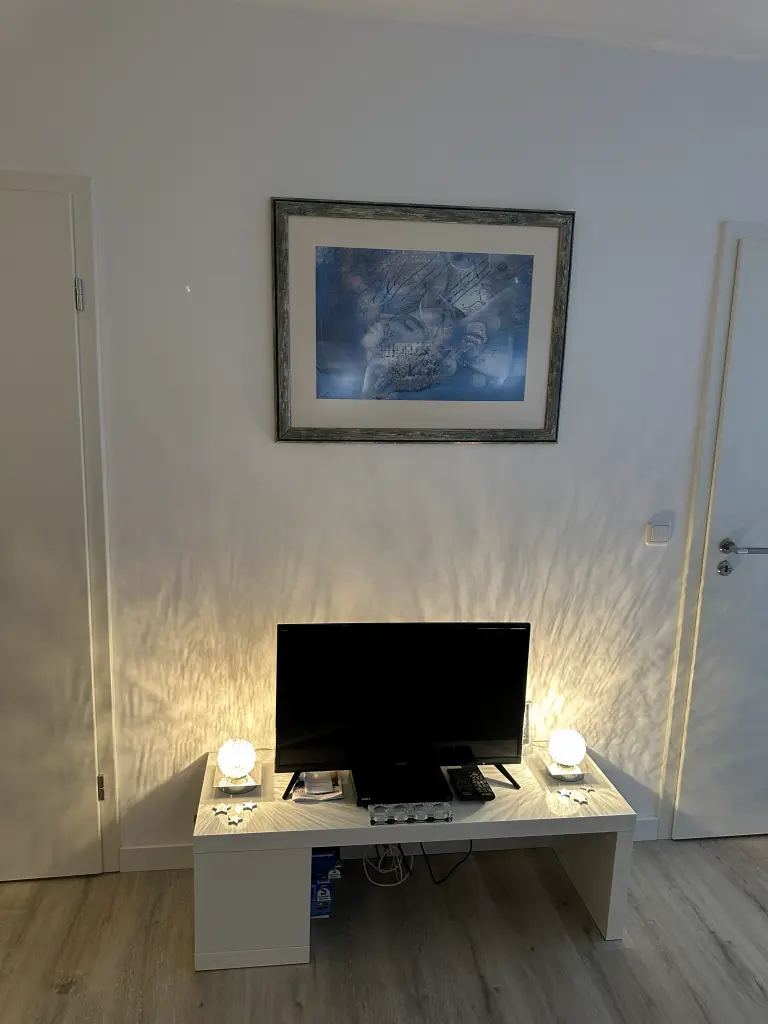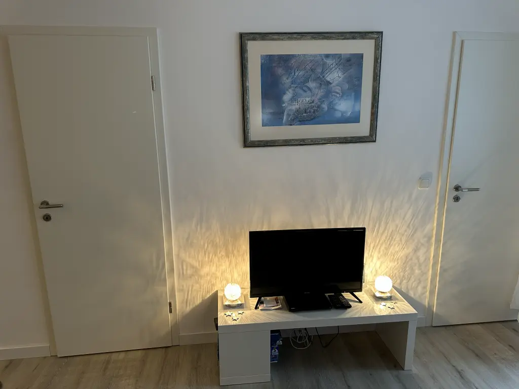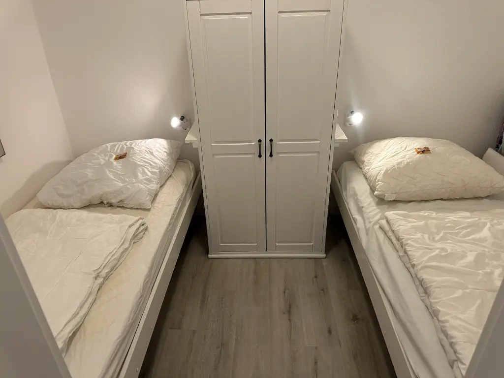 Sie verfügt über Zentralheizung und zwei Schlafzimmer, eins mit Etagenbett und eins mit zwei Einzelbetten. Im Wohnzimmer findest Du neben der gemütlichen Couch einen SAT-TV Flachbildschirm mit vielen deutschen Fernseh- und Radioprogrammen. Die Wohnung ist komplett mit Teppich ausgelegt und liegt sehr ruhig gelegen.
